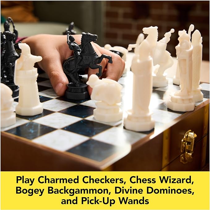 Spin Master Games, Wizarding World of Harry Potter Trunk of Games 6-in-1 Wooden Storage Box, for Muggle Fans of Harry Potter Movies, Chess Wizard, Pick-Up Wands & More, 2-4 Players, for Ages 8 & Up