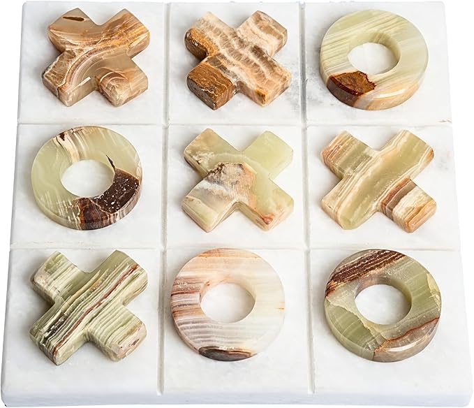 • HANDCRAFTED MARBLE GAME SET WITH A LUXURY TOUCH: This 10” solid onyx marble tic tac toe board is handcrafted by skilled artisans, making it a standout among premium home decor pieces. Whether you’re searching for fathers day gifts from wife or fathers day gifts from daughter, this elegant set delivers timeless appeal.