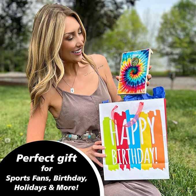 • Compact & Portable Design: Enjoy the classic game of cornhole in a new, miniature, portable cornhole set, official tabletop game size. Includes 2 wooden game boards, 4 Coinhole Coins 2 Gold, 2 Silver, sticker and instructions, in a gift box.
