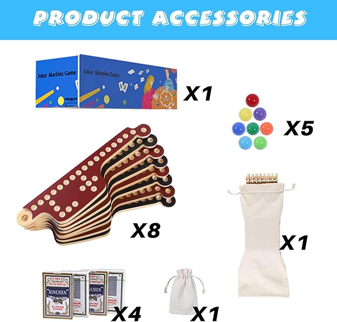 • 【Perfect Gift Set】:Very helpful for each player to distinguish their position and identity,if you're looking for a gift for a game enthusiast. Our jokers and marbles game is guaranteed to be a hit, as no one can resist such a fun-filled game. Additionally, its lightweight design makes it highly portable, perfect for taking along on trips, camping adventures, or gatherings. Enjoy the excitement of this addictive game anytime, anywhere!