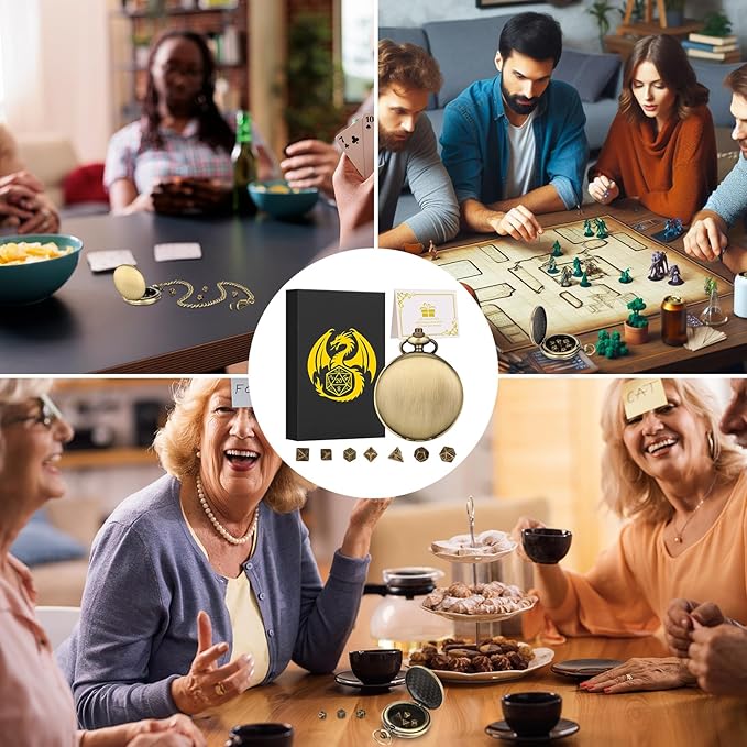 • COMPACT AND PORTABLE: This pocket watch case dice is equipped with two chains, which can be hung on clothes or hung around the neck as a necklace. It is easy to carry and allows you to start a game at any time