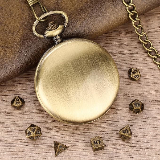 • STEAMPUNK DESIGN: Explore the fantasy realm with our Mini DND Dice Set in a Steampunk Smooth Pocket Watch Shell Case