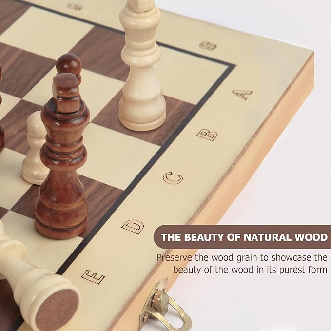 • MAGNETIC CHESSMEN: Built in magnetism, the wooden crafted chessmen can stay in square during play, even if the board is jostled or tilted. The bottom of the pieces are covered with velvet to prevent wear and tear on the board, making it more durable