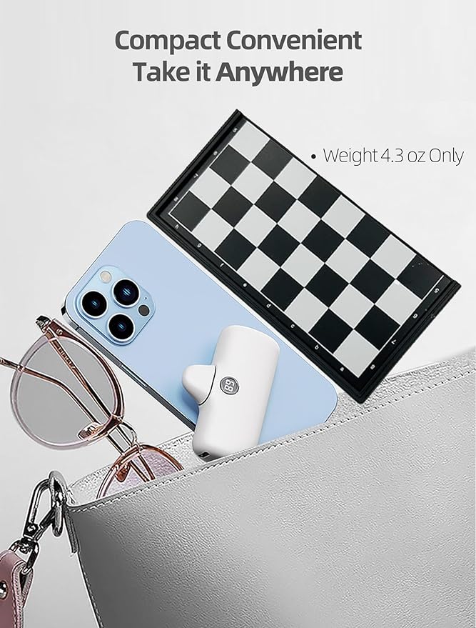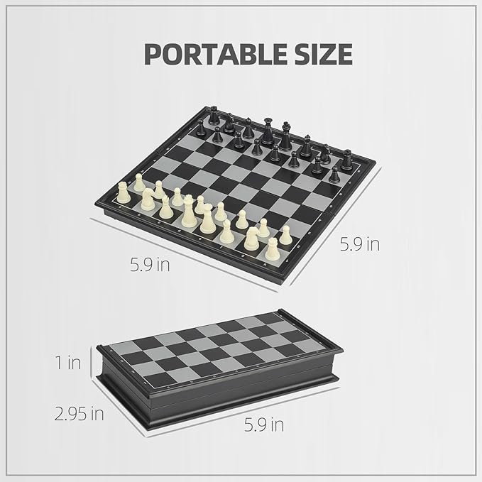 • Travel Size and Portable: This portable chess set is perfect for travel! The mini chess board is designed for easy carrying in your bag or pocket, making it ideal for long trips, daily commutes, or quick breaks. Enjoy chess anywhere, anytime with this convenient travel chess set.