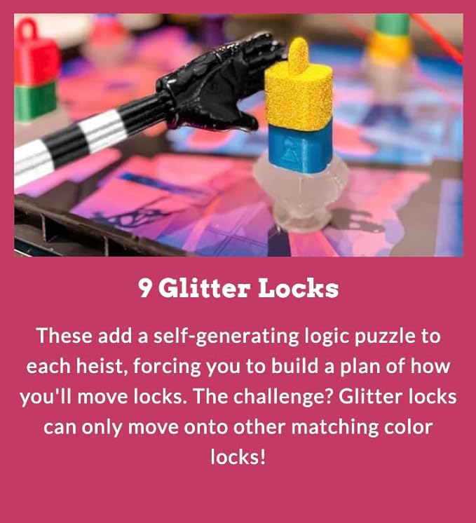 • INCLUDES THE DOUBLE CROSS EXPANSION PACK: Adds Glitter Locks (more complex puzzles), Sabotage Cards (mess with opponents), and a Bribable Guard (physical obstacle) for a more challenging and cutthroat game.