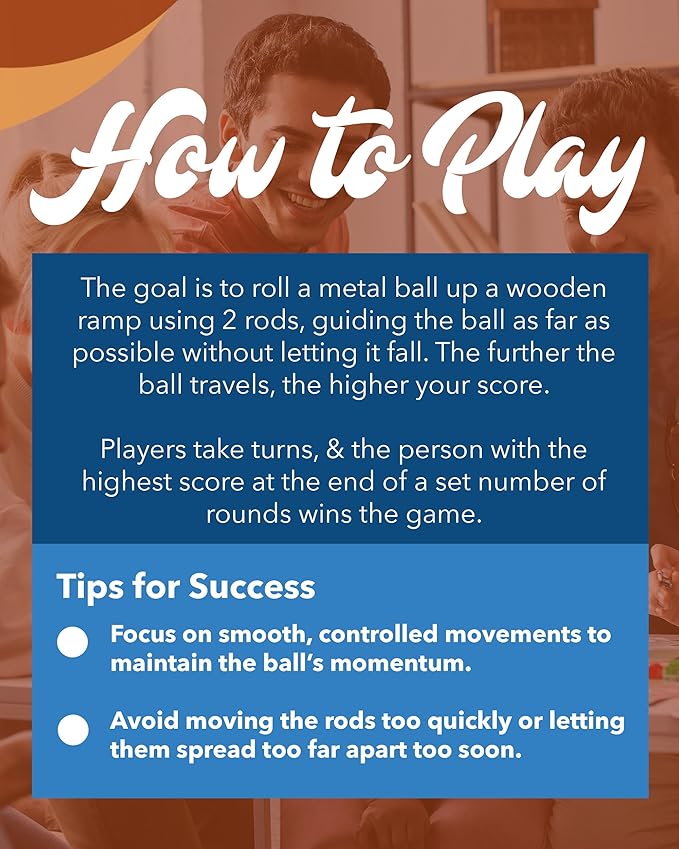 • ENGAGING CHALLENGE: The simple concept of balancing and propelling the metal ball uphill with the metal rods will have you and your friends hooked! Drop the ball closer to you for higher points.