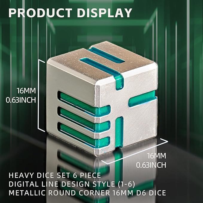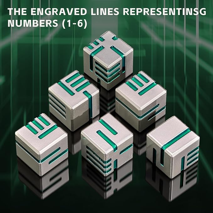 • Six Sided Metal Dice: Each side of the dice has irregular lines that represent specific numbers. The cool and unique design brings more fun to players. One set dice total 6 PCS of D6 Metal Dice. To protect table surface, it is recommended to use with trays and mats.
