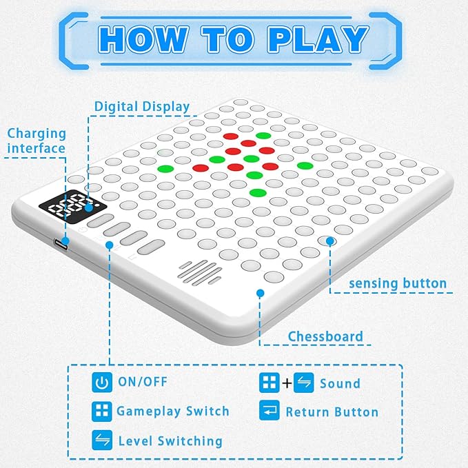 • User-Friendly Interface for Kids: Specifically tailored for kids aged 4 and up, the electric game board is simple to set up and use. Large, easy-to-read buttons and colorful visuals make it intuitive for young players