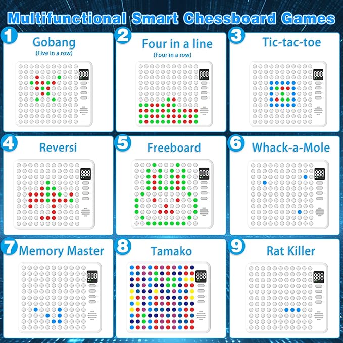 Dollox Kids Smart Chessboard Games, Built-in 9 Strategy Board Games Toys 5 in a Row Game, 4 in a Row, Tic Tac Toe, Memory Master AI Electronic Smart Board Game for Travel Party Family Night Gifts