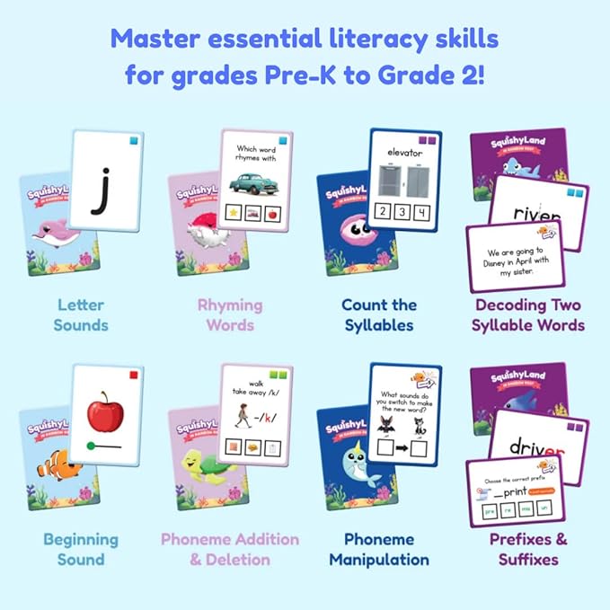• ๐™€๐™ˆ๐™‹๐™Š๐™’๐™€๐™๐™Ž ๐™€๐˜ผ๐™๐™‡๐™” ๐™‡๐™„๐™๐™€๐™๐˜ผ๐˜พ๐™” ๐™Ž๐™๐˜พ๐˜พ๐™€๐™Ž๐™Ž: SquishyLand helps children develop essential literacy skills at every grade level, thus, fostering achievement of foundational Reading Mastery. Pre-K learners grasp beginning and letter sounds, Kindergarteners explore phoneme addition and rhyming, 1st graders tackle syllable counting & phoneme manipulation, and 2nd graders decode two-syllable words and understand prefixes and suffixes. Watch their confidence and reading fluency soar with every play of these silly small squishy toy creatures!