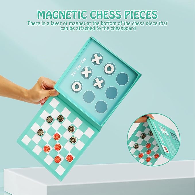 • Lightweight & Easy Storage: The travel board games opens like a book, making it incredibly easy for children to carry. With two magnetic games on one board, child-friendly design, it’s a fun and convenient choice for playtime anytime, anywhere.