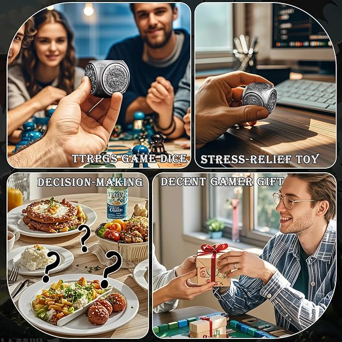 • Fun spinner dice to roll as cool dnd dice or spin while thinking or doing focus training and stress relief.