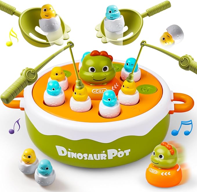 • 【Learning While Playing】Kids can easily catch the dinos using the magnetic fishing rod, or play bowling mode with dinosaur car, which will help improve their hand-on ability. On the back of the board, toddlers can play tic-tac-toe game with friends and develop strategic thinking. Great educational toys for quick-thinking, fast-moving kids who love a playful competition