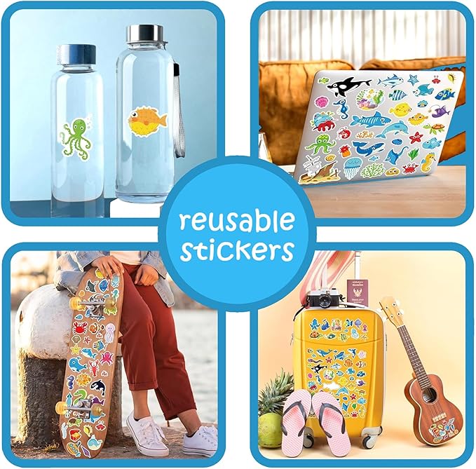 • ✅ Ocean Sticker Book: 62 reusable stickers with ocean themed shapes.