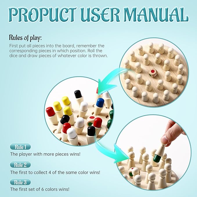 • ✅【Color Memory Game】Our Memory Chess is suitable for individuals aged 3 and above. For younger children, Memory Chess can enhance color recognition, develop hand balance, and improve hand-eye coordination. For older children, it can challenge the brain and enhance cognitive abilities. For the elderly, it helps train brain and memory functions, potentially slowing down brain degeneration. This is an excellent memory game toy for all age groups.