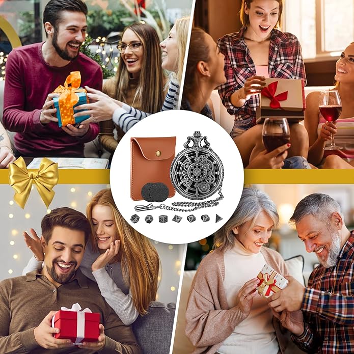 • Exquisite Gift: Mini dnd dice pocket watch set comes with a brown dragon pattern leather bag, beautifully packaged and functional, a meaningful Christmas gift, Father's Day gift, birthday gift, Valentine's Day gift for men women