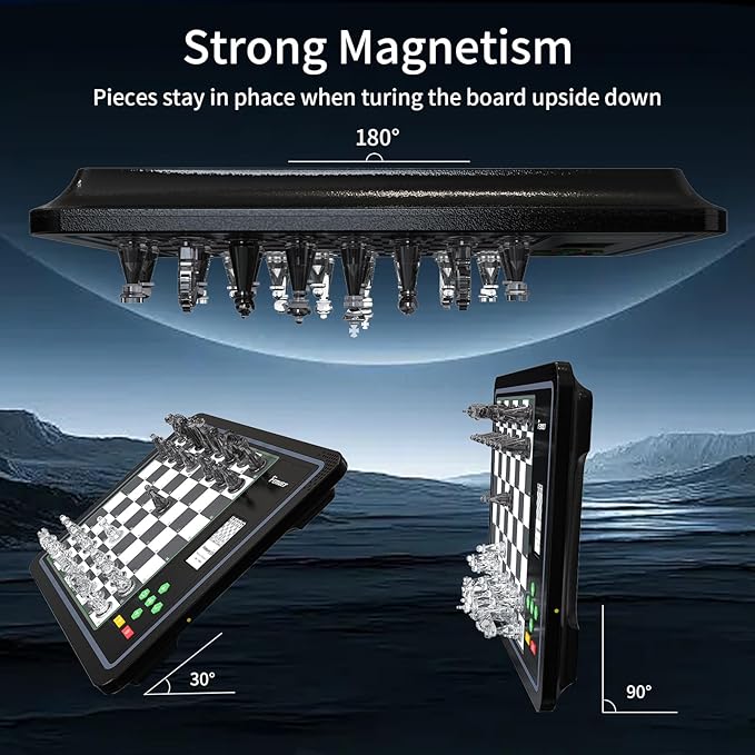 • 【High-end Electronic Chess Set】Femuey L6 is one High end technology chess computer with a sensor board and innovative LED lights to indicate the moves. There is no need to look at the display; you can fully focus on the board and the pieces. Playing Femuey L6 like playing with one real person . Of course, Femuey L6 is always there for you, ready for another game!