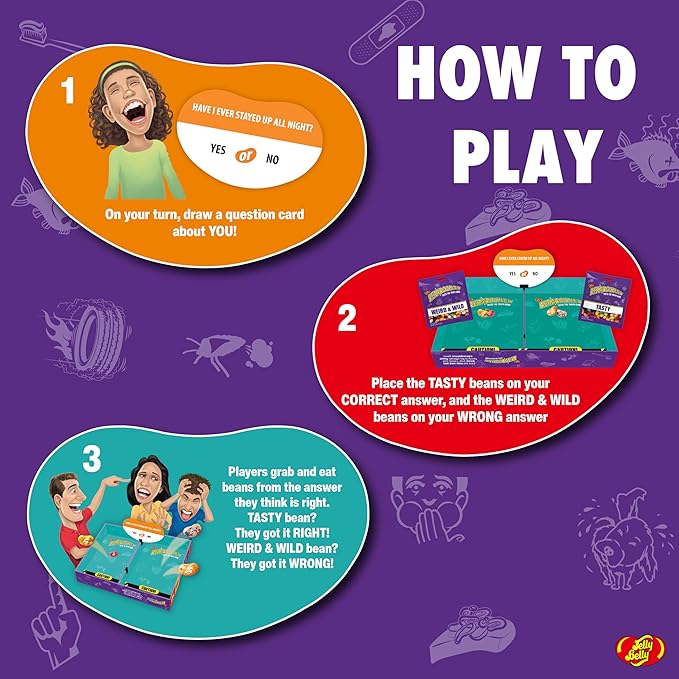 • HOW IT WORKS. On your turn, ask the other players a question about yourself. Put the tasty beans on the right answer and the weird & wild beans on the wrong answer. They will find out how well they know you through the taste of the jelly beans they pick!