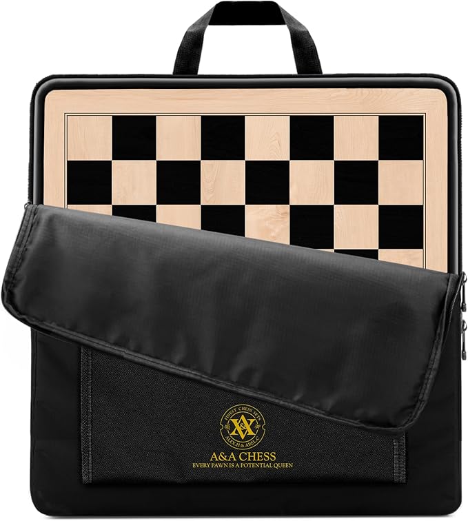A&A 17.25" Professional Wooden Chess Board with Storage Bag/Ebony Wood & Maple Inlay / 1.75" Squares w/o Notation