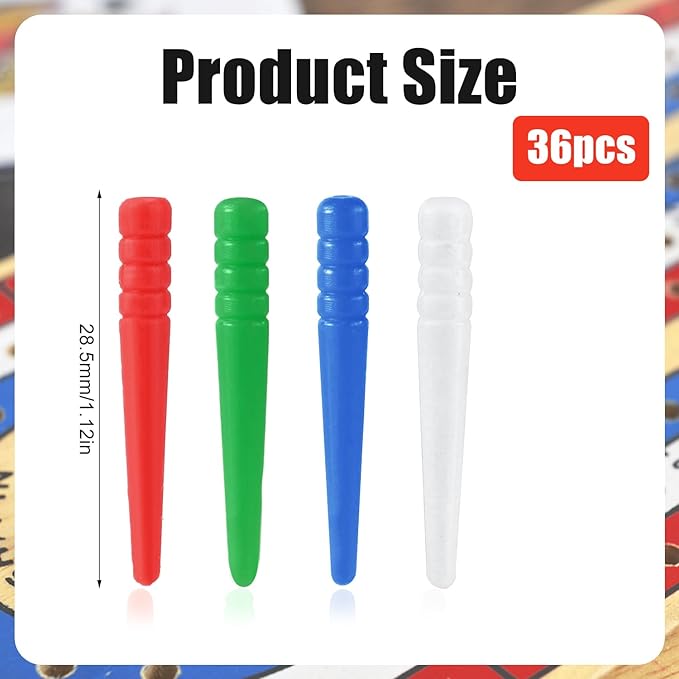 • What You Get: You will get 36 pieces of cribbage board pins in the package, 4 colors in total, including blue, white, green, red. The size of which are about 28.5mm/1.12in.