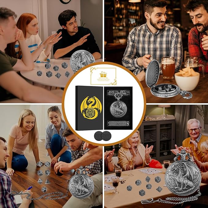 • Stylish Gift: Each dnd dice pocket watch case set comes with a beautiful black gift box, adding a touch of sophistication, perfect gift for any occasion, good Christmas gift, birthday gift, father's day gift, valentine's day gift