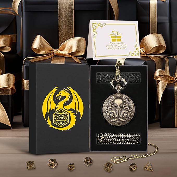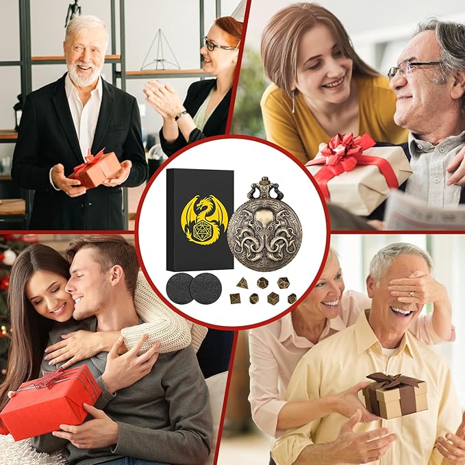 • Stylish Gift: Each dnd dice pocket watch case set comes with a beautiful black gift box, adding a touch of sophistication, perfect gift for any occasion, good Christmas gift, birthday gift, father's day gift, valentine's day gift