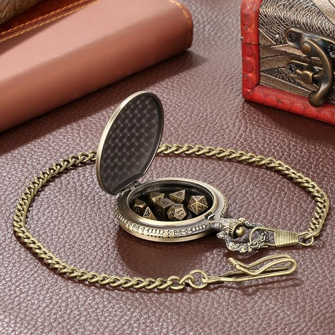 • Functional Storage: This pocket watch case protector holds up to 7 mini DND dice and with the rounded foam to avoid rattling when placed, it is not only a decorative piece but also a practical storage solution for gaming accessories