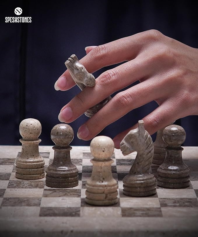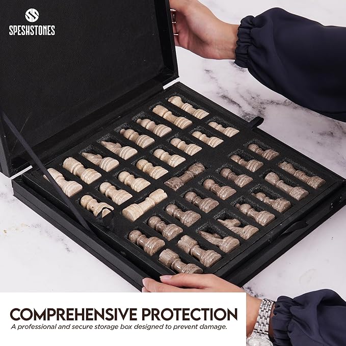 • WHAT IS INCLUDED - 1 x Chess Board & 32 x Chess Figures + 2 Extra Queens. Comes along with free Storage Box & SPESHSTONES branded, secure and fragile packaging.