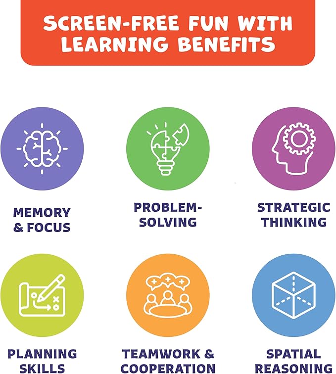 • BUILDS KEY SKILLS THROUGH PLAY – Develops memory, problem-solving, turn-taking, planning, and communication skills — all while keeping kids engaged in fun, hands-on play with no screens in sight!