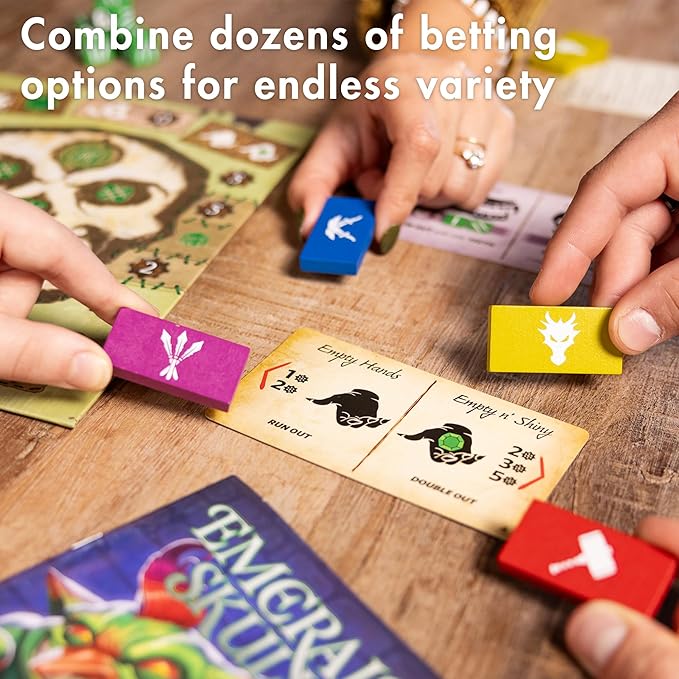 Emerald Skulls | Dice Game with Real-time Betting | Push Your Luck Strategy Board Game | Fast Action Casino-style Group Play | Family Game for 1-6 Players, Ages 14+, 30-45 Minutes